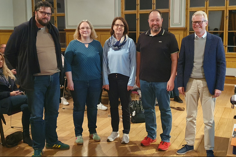 Von links nach rechts: Marc Trennhäuser (Vorsitzender), Carina Nitschke (Schriftführerin), Sabina Baumunk (Kassenführerin), Björn Burkowski (stv. Vorsitzender), Dr. Ralf Weskamp (Schulleiter)