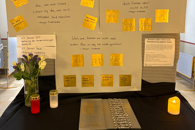 Die Schulgemeinschaft ist herzlich eingeladen, die Stellwand zu besuchen, der Opfer zu gedenken und ein Zeichen gegen das Vergessen sowie gegen jede Form von Ausgrenzung und Diskriminierung zu setzen.