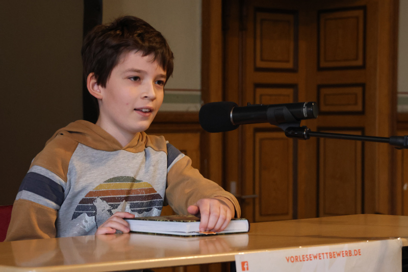 In der ersten Runde präsentierten alle Teilnehmerinnen und Teilnehmer einen Auszug aus Das Geheimnis von Bahnsteig 13 von Eva Ibbotson vor der Jury, bestehend aus dem Elternbeiratsvorsitzenden Marc Trennhauser, Bundesfinalistin Amalia Schröder sowie dem Boox-Team. Die vier besten Leserinnen und Leser qualifizierten sich anschließend für die zweite Runde, die vor dem gesamten Jahrgang ausgetragen wurde.