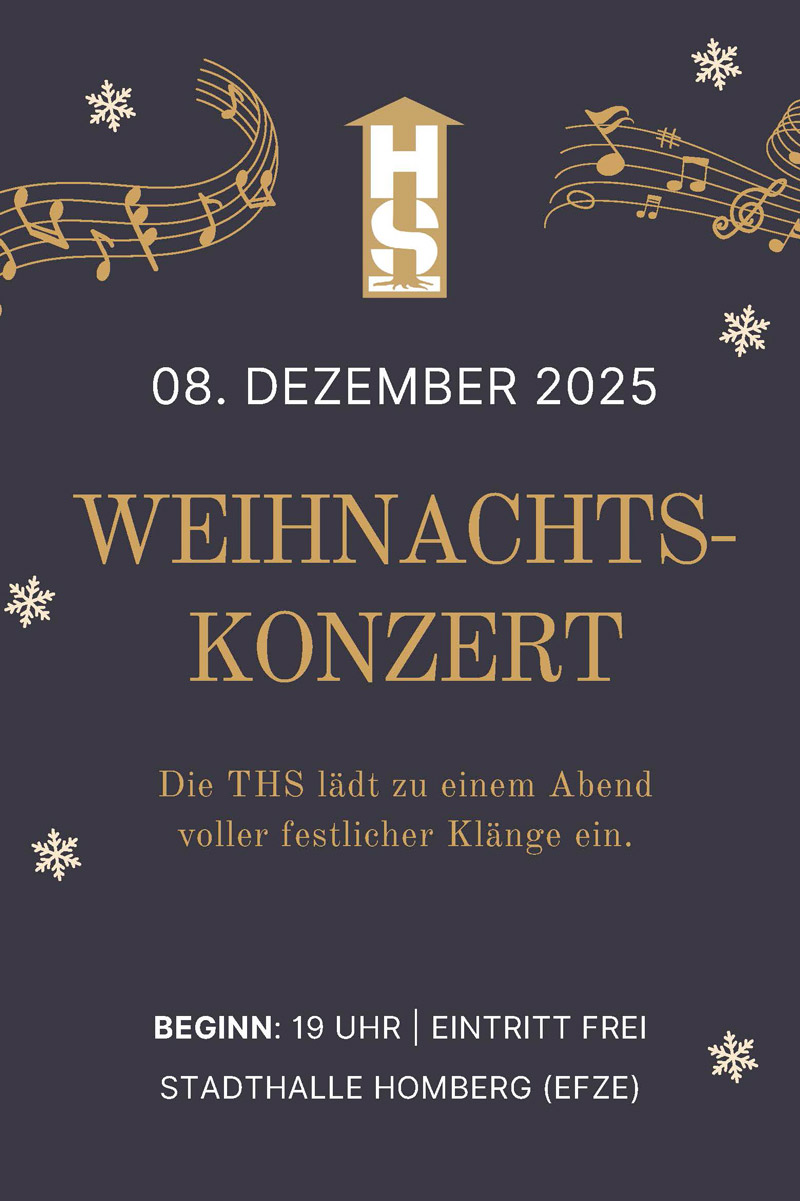 Wir laden sehr herzliche zum Weihnachtskonzert unserer Schule am 8. Dezember in die Stadthalle zu Homberg (Efze) ein.